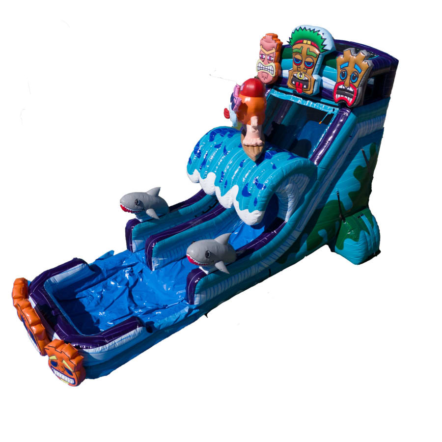Our single lane slide is versatile and ideal for a variety of events, including backyard parties, county parks, and city parks. Enjoy the thrill without compromising on safety. Tiki Tovi's ensures a top-quality experience every time.