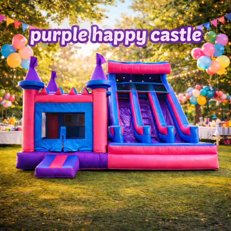 Bring joy and excitement to your event with the Pink and Purple Happy Castle Combo Dual Slide. Contact us today to learn more about our rental options and make your reservation. Let’s create unforgettable memories together! 🎊