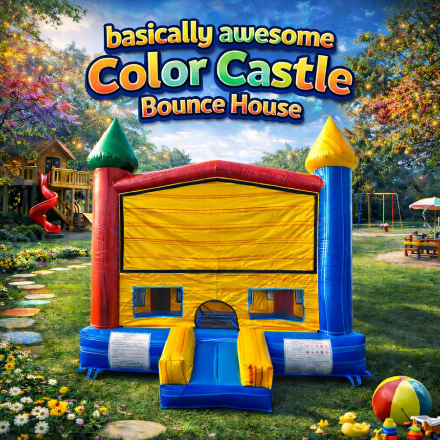 Bring big smiles to your next event with the Basically Awesome Color Castle Bounce House! Bright colors, kid-friendly design, and perfect for birthdays, parties, and family fun. Book today!