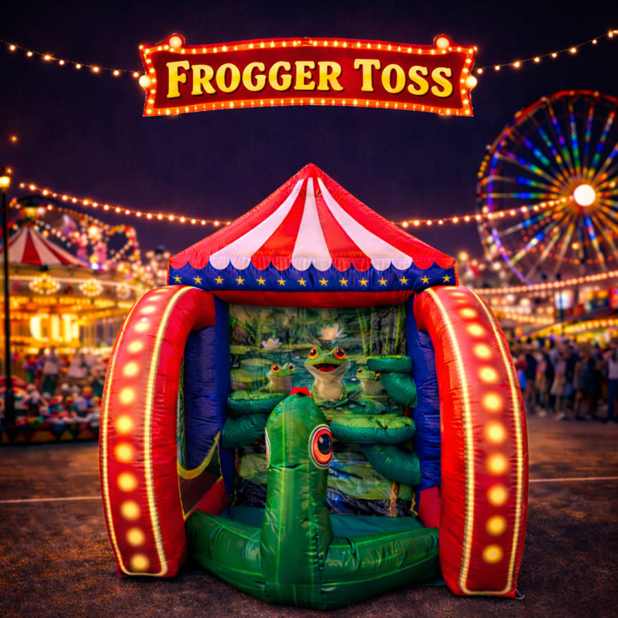 The Carnival Frogger Toss is a bright, engaging bean-bag toss game that draws crowds and creates instant fun. Ideal for school fairs, corporate events, birthday parties, and community carnivals. Easy to set up. Easy to play. High replay value for all ages.