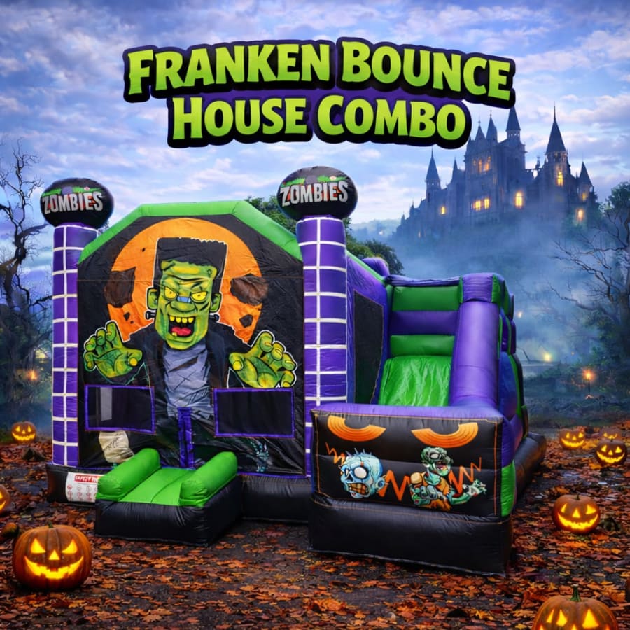 The Franken Bounce House Combo and Slide is a show-stopping inflatable that combines a spacious bounce area, thrilling slide, and themed graphics for unforgettable parties. Fast to set up and built for safety, this combo delivers high-energy play for kids ages 3–12. Perfect for birthdays, school events, and community gatherings. ๐