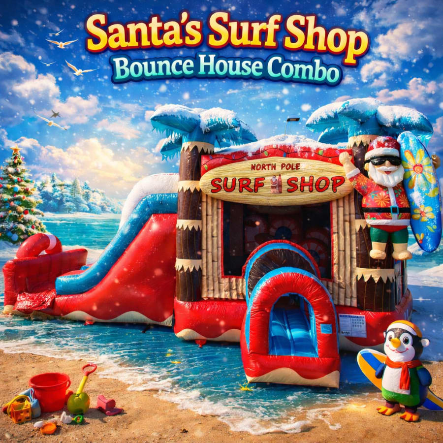 Looking to add a splash of festive fun to your event this holiday season? The Christmas Santa Surf Shop Combo is the perfect addition! Whether you're planning birthday parties, charity events, weddings, corporate events, backyard parties, or gatherings at county and city parks, this combo will surely be a hit. Imagine the joy and laughter as guests, young and old, revel in this unique and entertaining attraction.