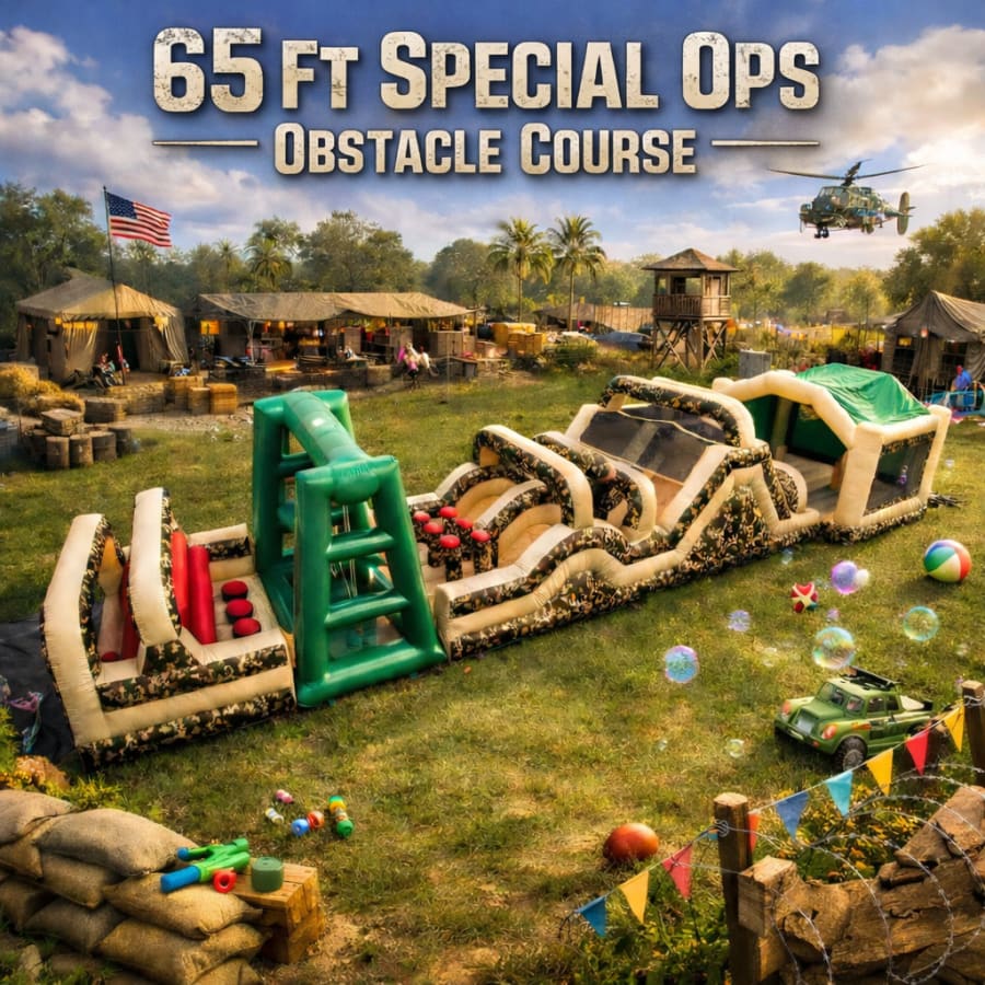 We proudly offer bounce house rentals along with the 65 FT Special Ops Obstacle Course in Davie, Sunrise, Weston, Plantation, Coconut Creek, Cooper City, Coral Springs, Dania Beach, Deerfield Beach, Fort Lauderdale, Hallandale Beach, Hillsboro Beach, Hollywood, Lauderdale-By-The-Sea, Lauderhill, Lauderdale Lakes, Lazy Lake, Lighthouse Point, Margate, Miramar, North Lauderdale, Oakland Park, Parkland, Pembroke Park, Pembroke Pines, Pompano Beach, Sea Ranch Lakes, Southwest Ranches, Tamarac, West Park, Wilton Manors, Miami, Miami Lakes, and Hialeah. Elevate your event with our reliable and professional service, ensuring a seamless experience from delivery to setup and teardown. Trust us to bring the fun and excitement to your next event!