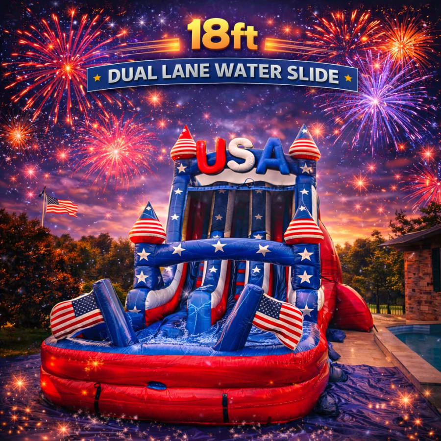 Ready to take your next event to the next level? Introducing the 18 Ft USA Dual Lane Water Slide – the ultimate centerpiece for any celebration! Whether you’re hosting backyard parties, corporate events, birthday bashes, or even weddings, this patriotic water slide brings thrilling fun for guests of all ages. With its eye-catching red, white, and blue design, it’s not just a slide – it’s a statement! πΊπΈπ¦