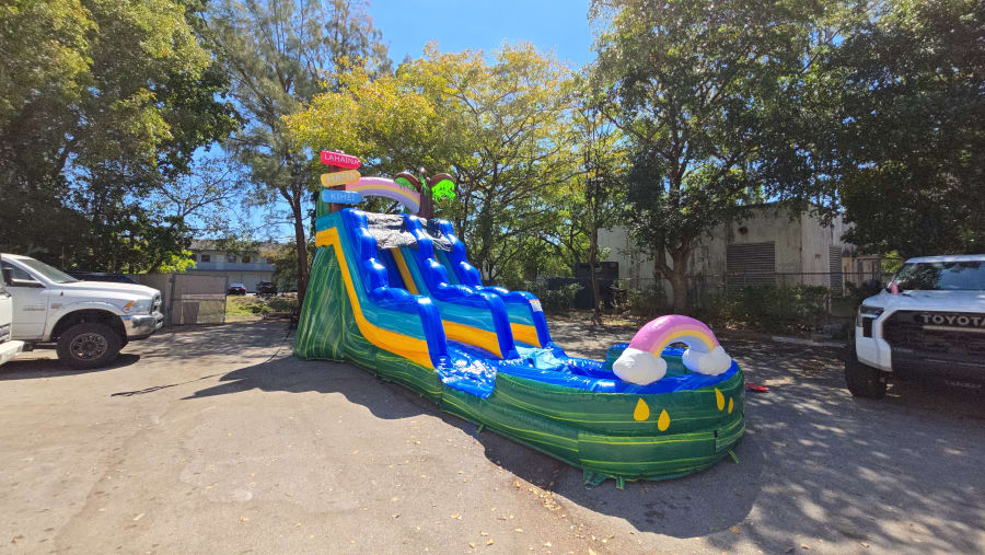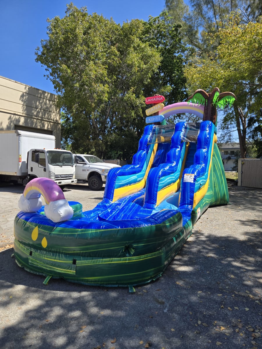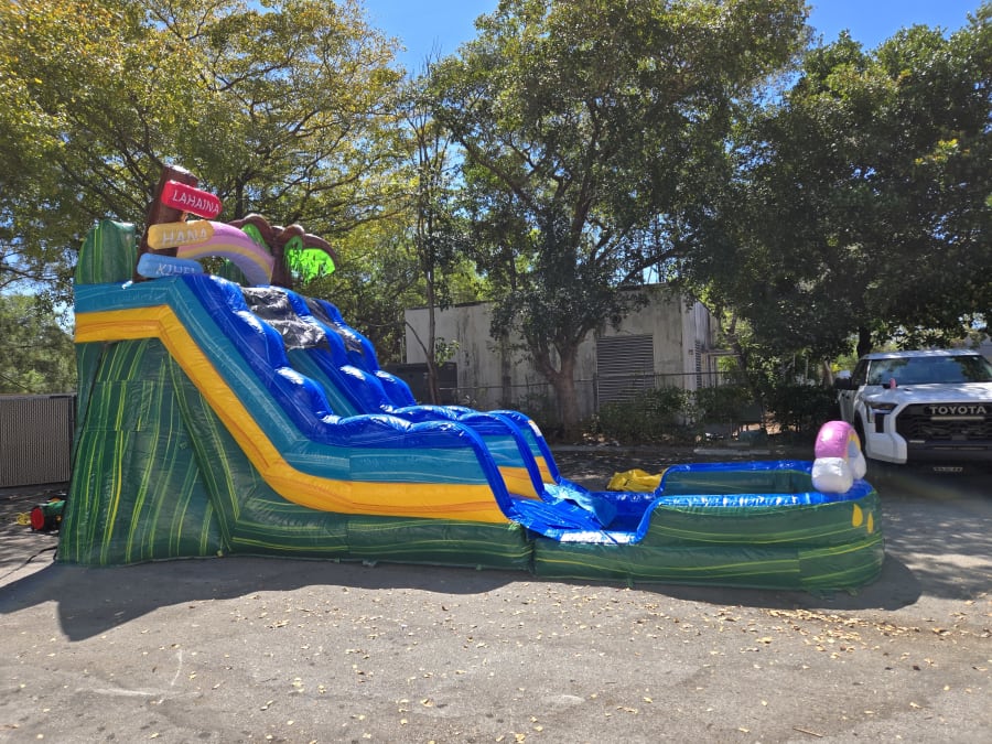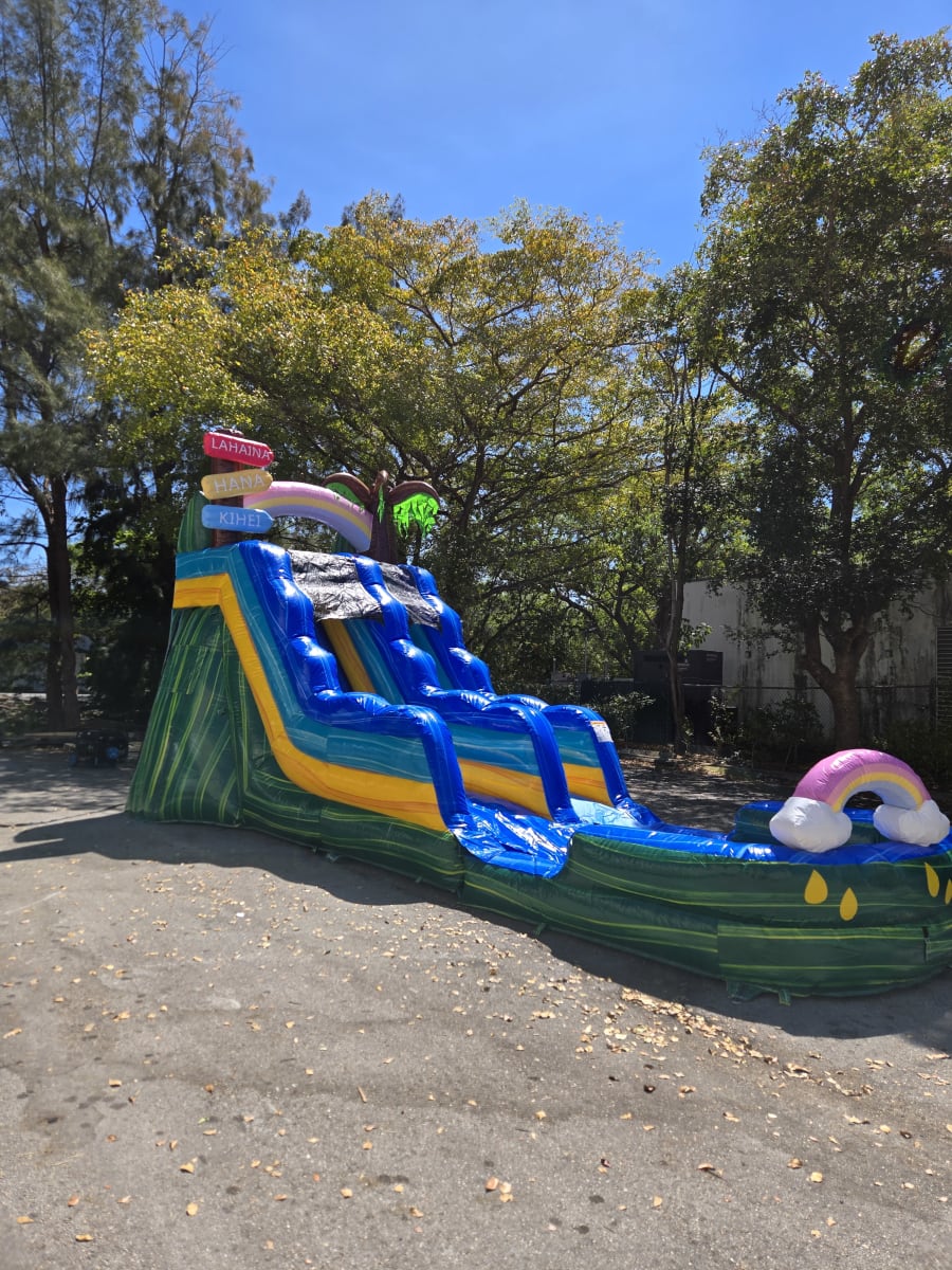 Don't miss out on the opportunity to make your next event unforgettable. Contact us now to reserve the Hawaii Camper 15 ft Water Slide and let the good times roll! Whether it's for a birthday bash or a corporate event, we guarantee a water-soaked day filled with laughter and excitement.