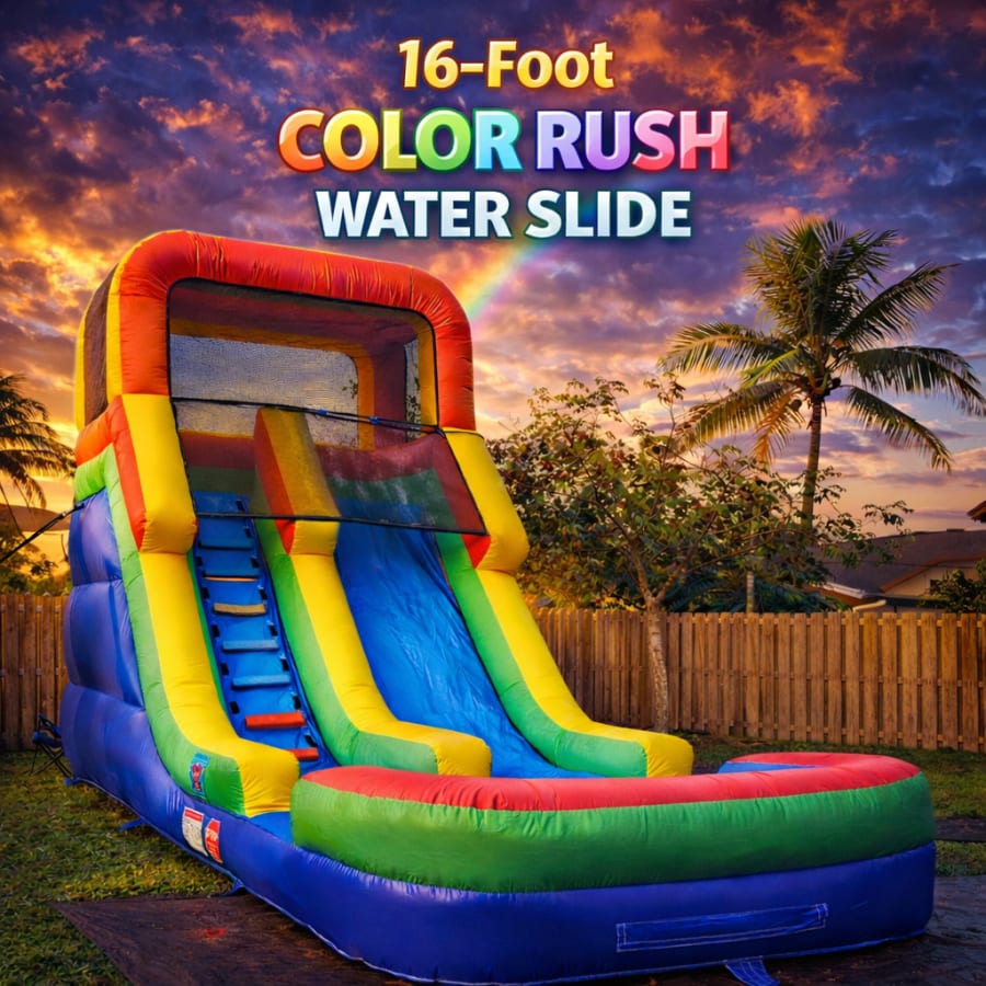 Don’t miss out on bringing joy and laughter to your guests. Contact us today to reserve the Color Rush 16 FT Wet/Dry Slide and ensure your event becomes the highlight of the season. Our convenient service areas include Miramar, North Lauderdale, Oakland Park, Parkland, Pembroke Pines, Pompano Beach, and beyond. We are here to help you create memories that will last a lifetime! 📞✨