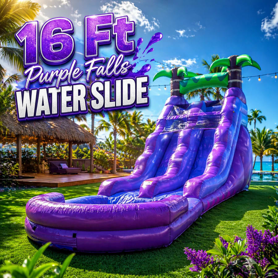 Ready to add high-energy fun to your event? Contact us now to reserve the 16 Ft Purple Falls Water Slide. Limited availability for summer weekends. Book early and make your celebration unforgettable! 🎉